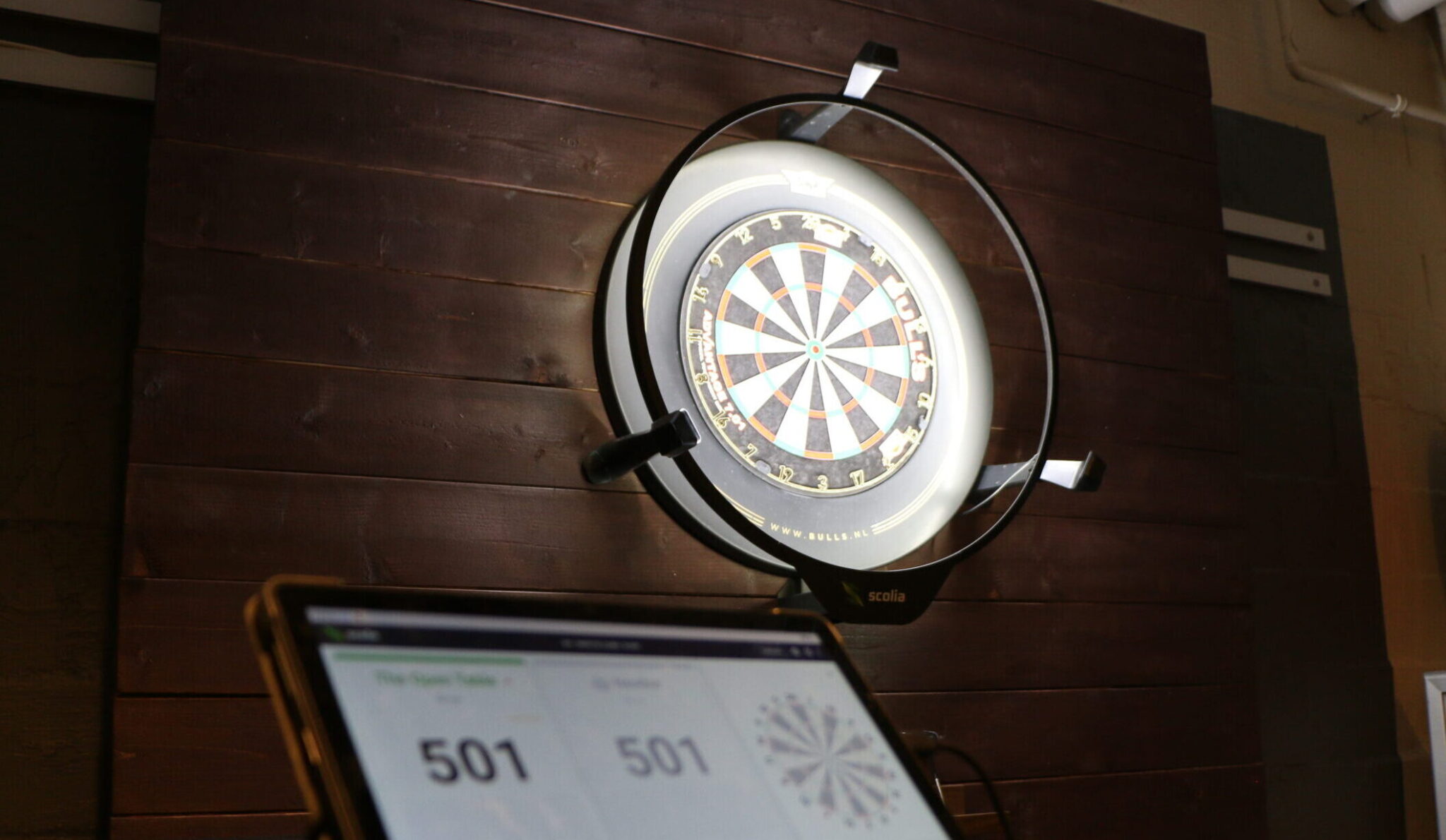 Tule heittämään nuolia dart-alueellamme, jossa on Scolia Home 2 -automaattinen pisteytysjärjestelmä pisteiden seurantaan.